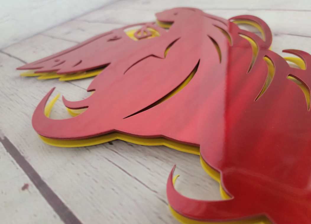 This a 15" x 15" layered metal sign that is cut out of 10 gauge aluminum.