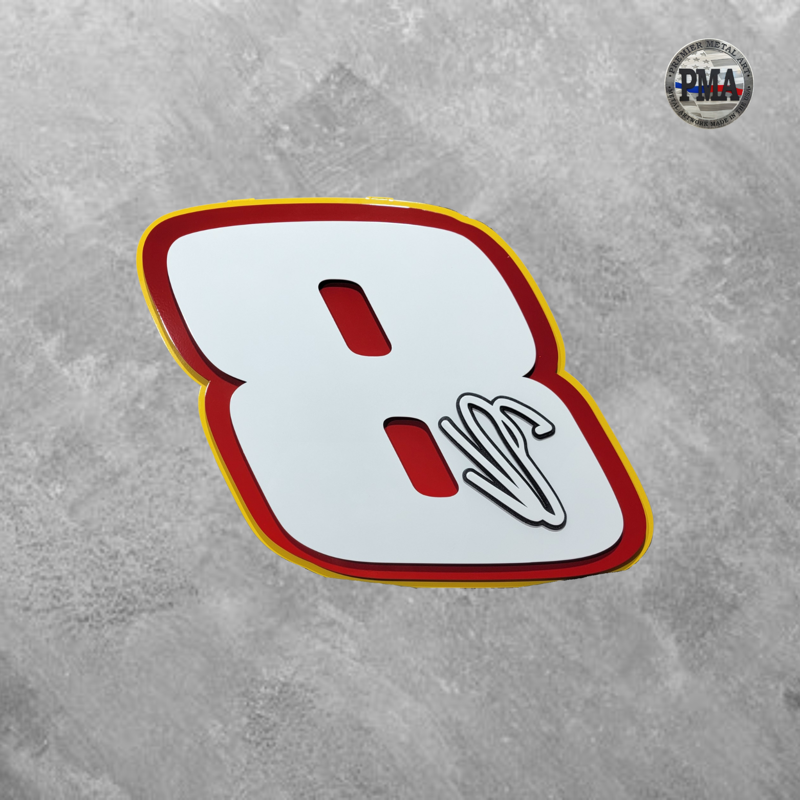 Celebrate your love for racing with these hand crafted pieces of multi-layer metal art. Perfect for the home or office. Take them to the track to get autographed for that one-of-a-kind personal piece of memorabilia. Made in America! Officially licensed with JR Motorsports!