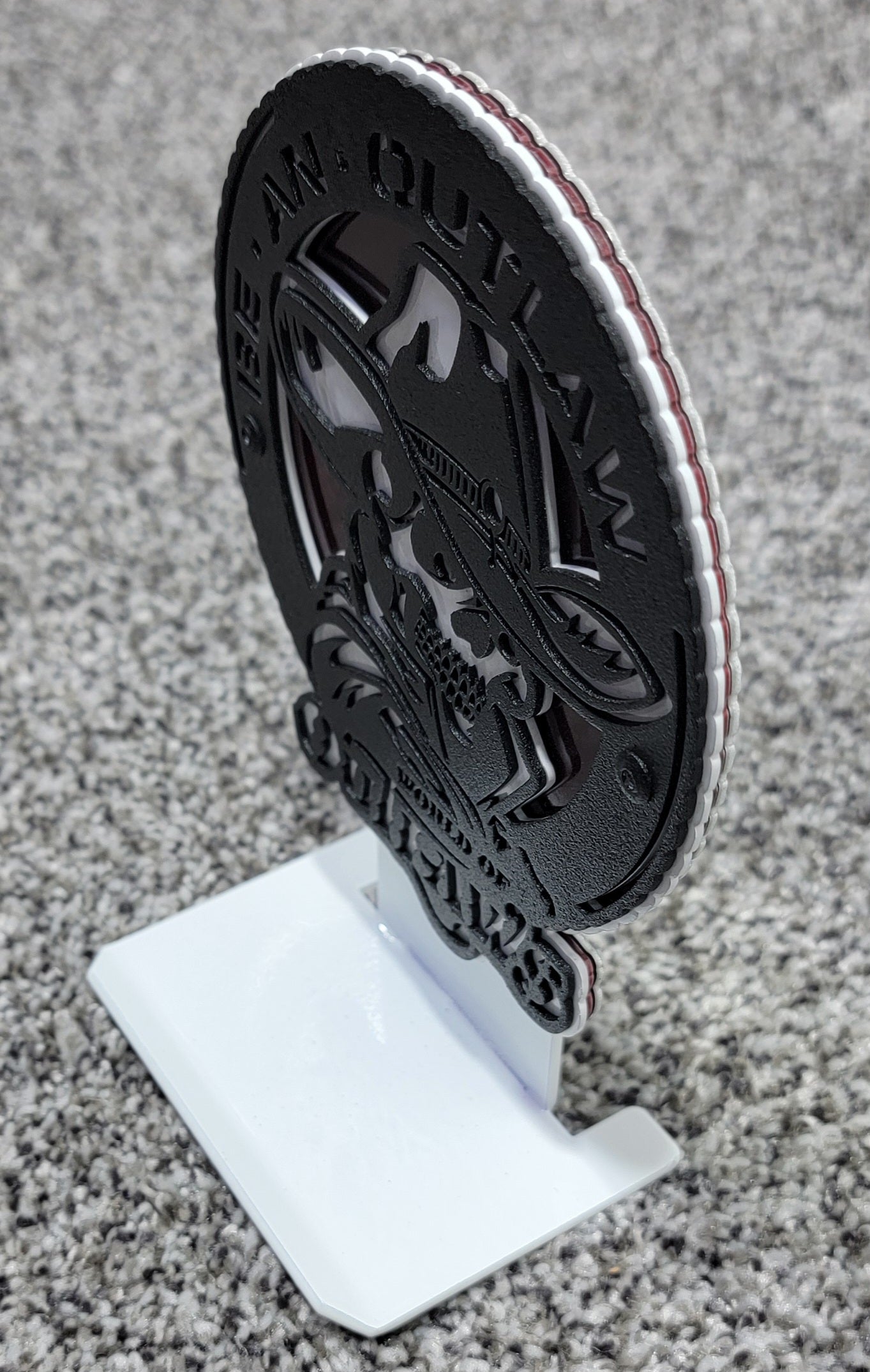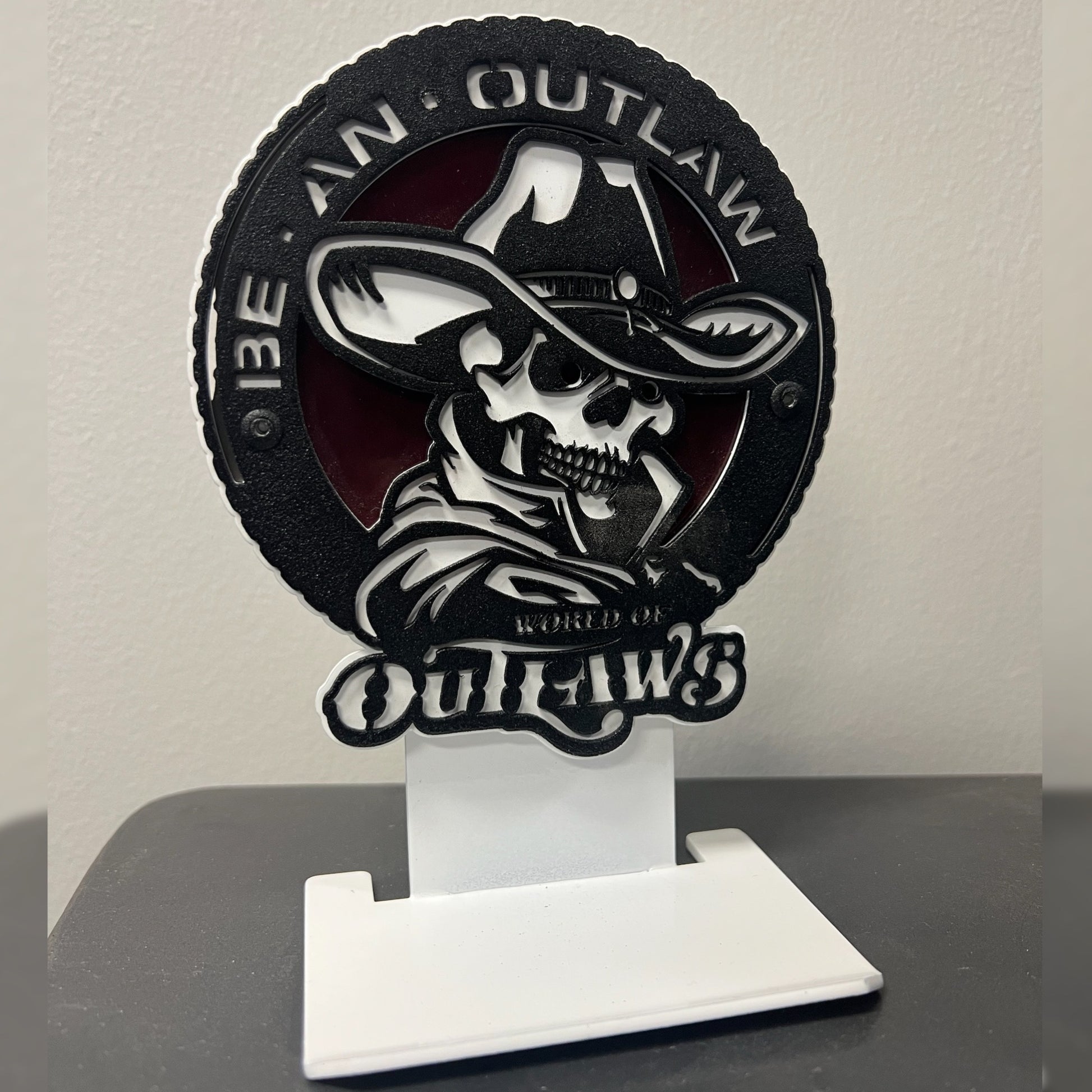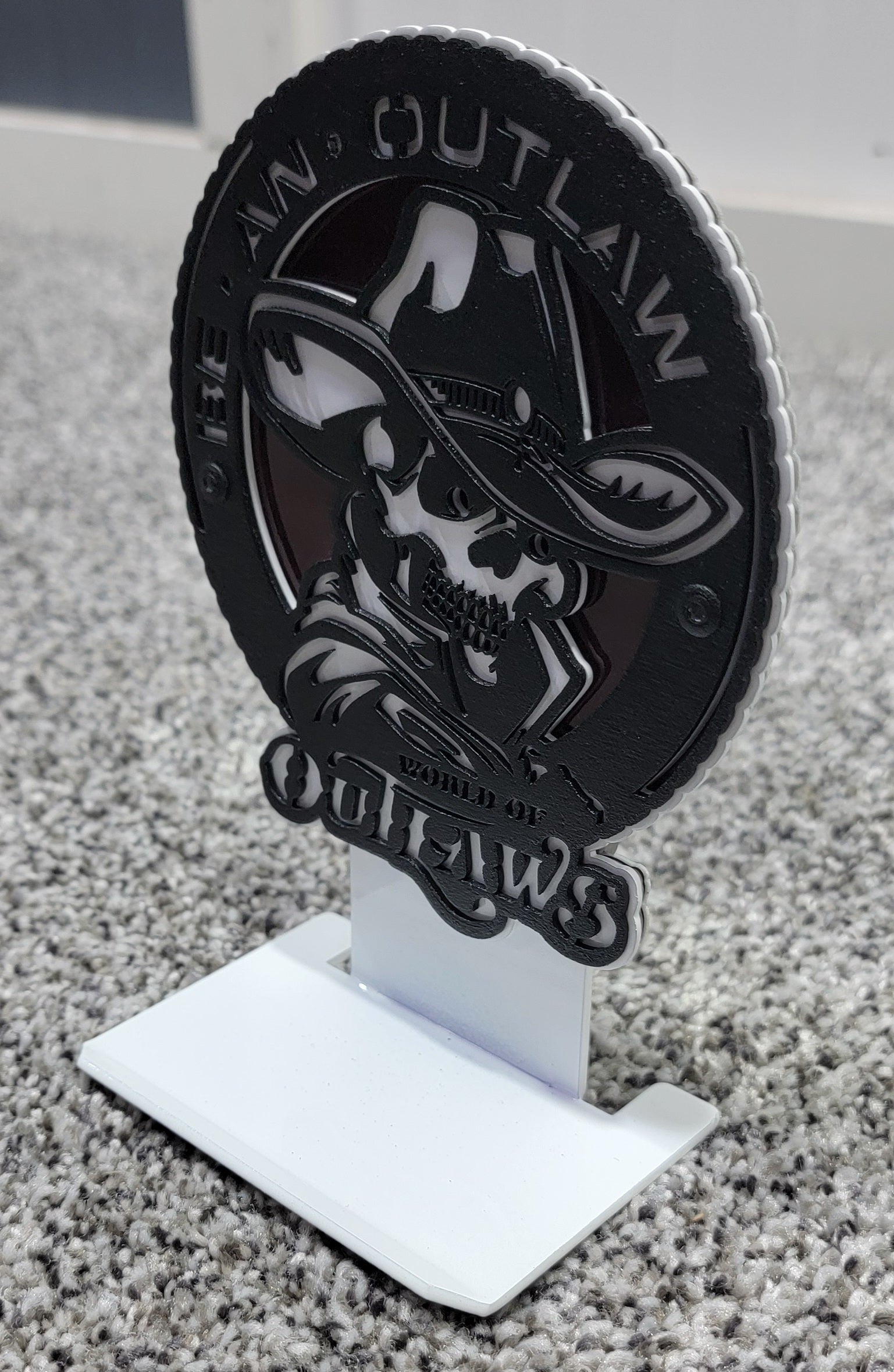 Celebrate legacy with this one of a kind metal art collectible. Hand made in America. Display has detachable shelf. Officially Licensed with World Of Outlaws.