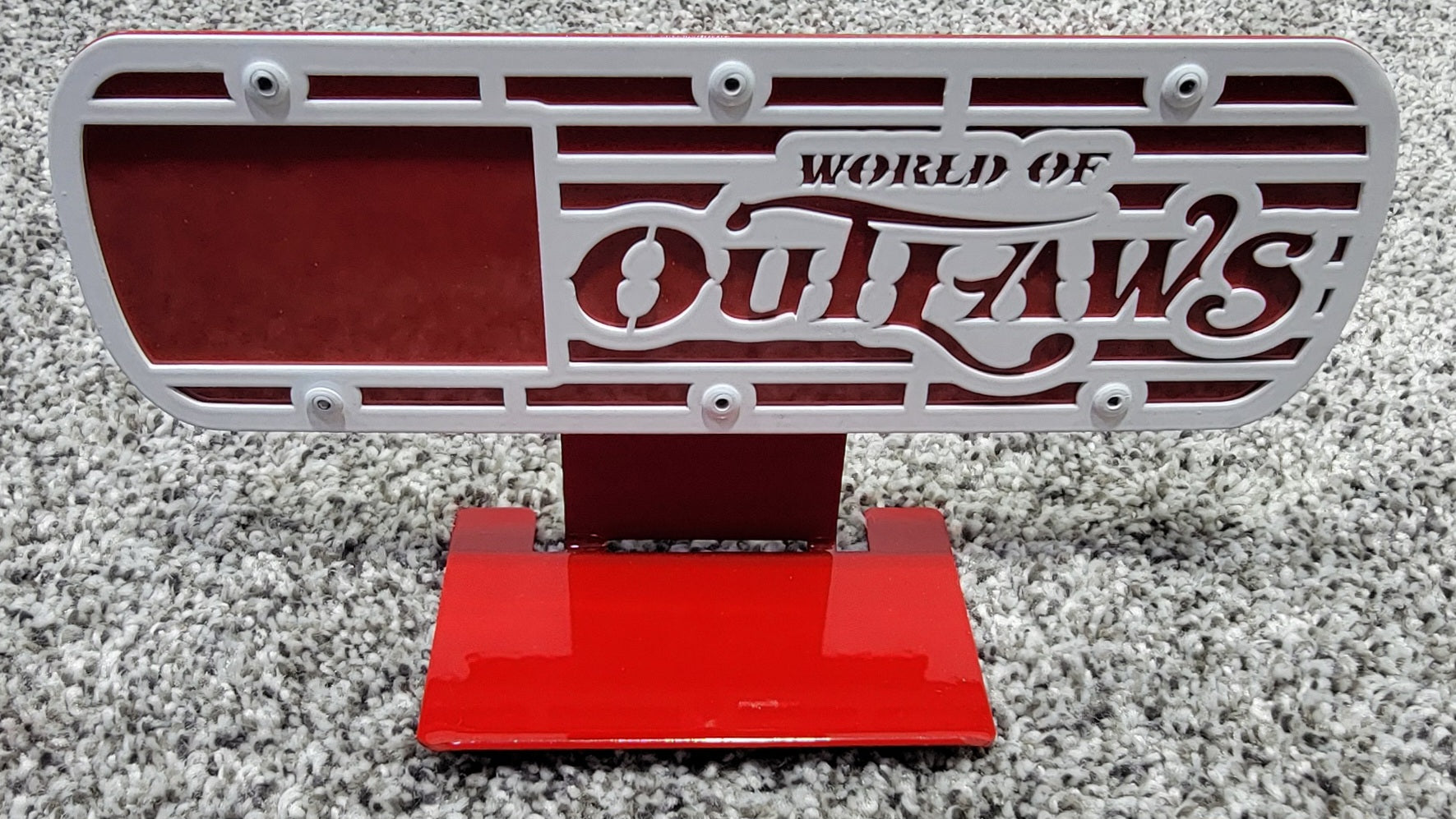 World Of Outlaws Racing Valve Cover is a Magnet and Diecast Display. This is perfect for your tool box, fridge, and anything in-between. Officially licensed with World Of Outlaws.
